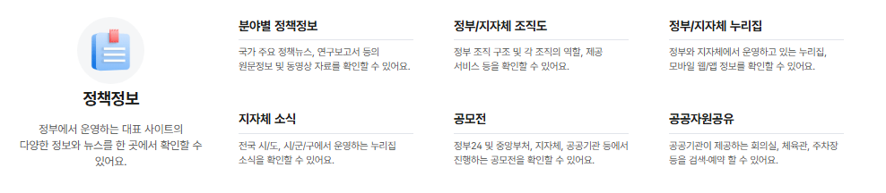 민원24시 홈페이지에서는 현재 시행 중인 정부 정책과 법령에 관한 정보를 쉽게 확인할 수 있습니다.