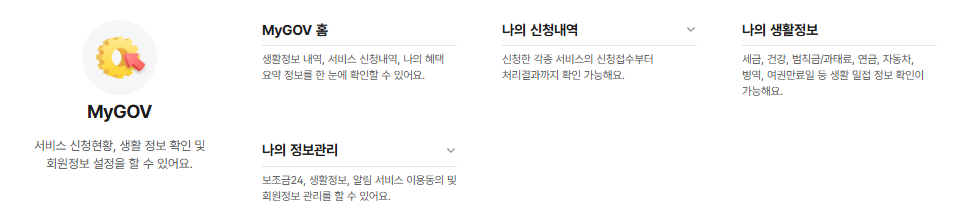 - 메인 메뉴에서 ‘MY GOV’ 버튼을 클릭합니다.